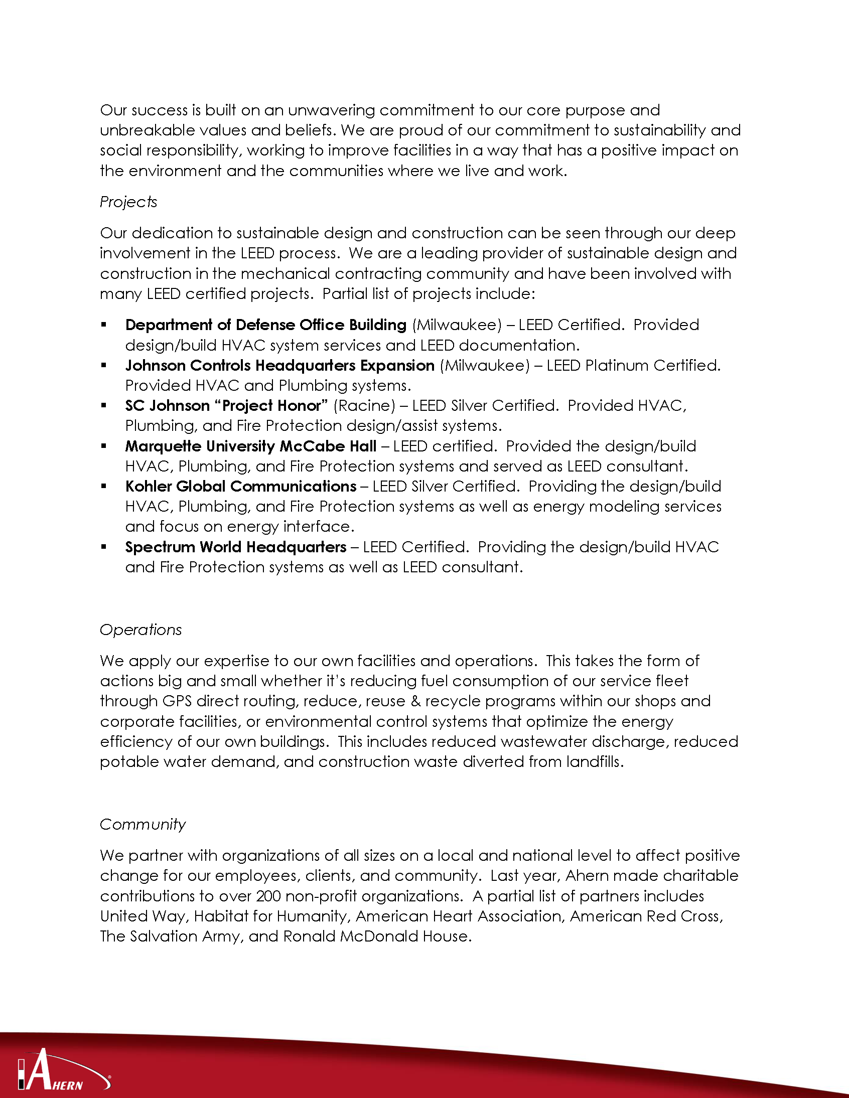 Ahern Statement on Sustainability